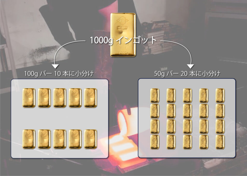 純金インゴットバーの小分け精錬サービス。